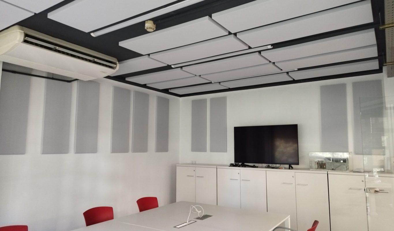 Tratamiento de absorción en sala polivalente de oficinas donde se realizan actos, cursos etc...