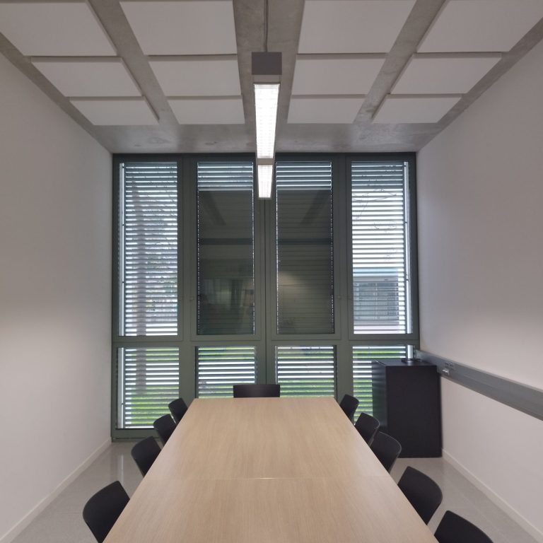 Suministro y colocación de placas fonoabsorbentes para mejorar el confort acústico en diversas aulas, despachos y salas de reuniones.