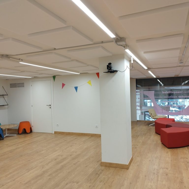 Tratamiento de absorción en sala polivalente de oficinas donde se realizan actos, cursos etc...