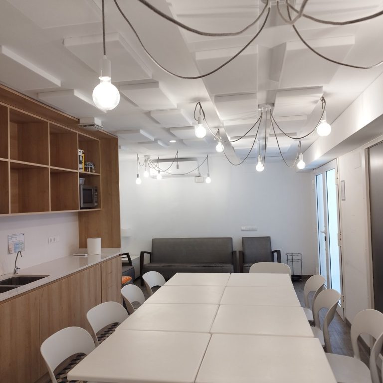 Suministro y colocación de placas fonoabsorbentes para mejorar el confort acústico en diversas aulas, despachos y salas de reuniones.